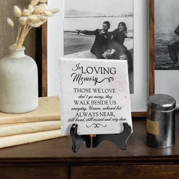 Loving Memory Stone Tile with Wooden Stand Memorial Tile for Loss of Loved One Sympathy Bereavement Remembrance Condolences Gift